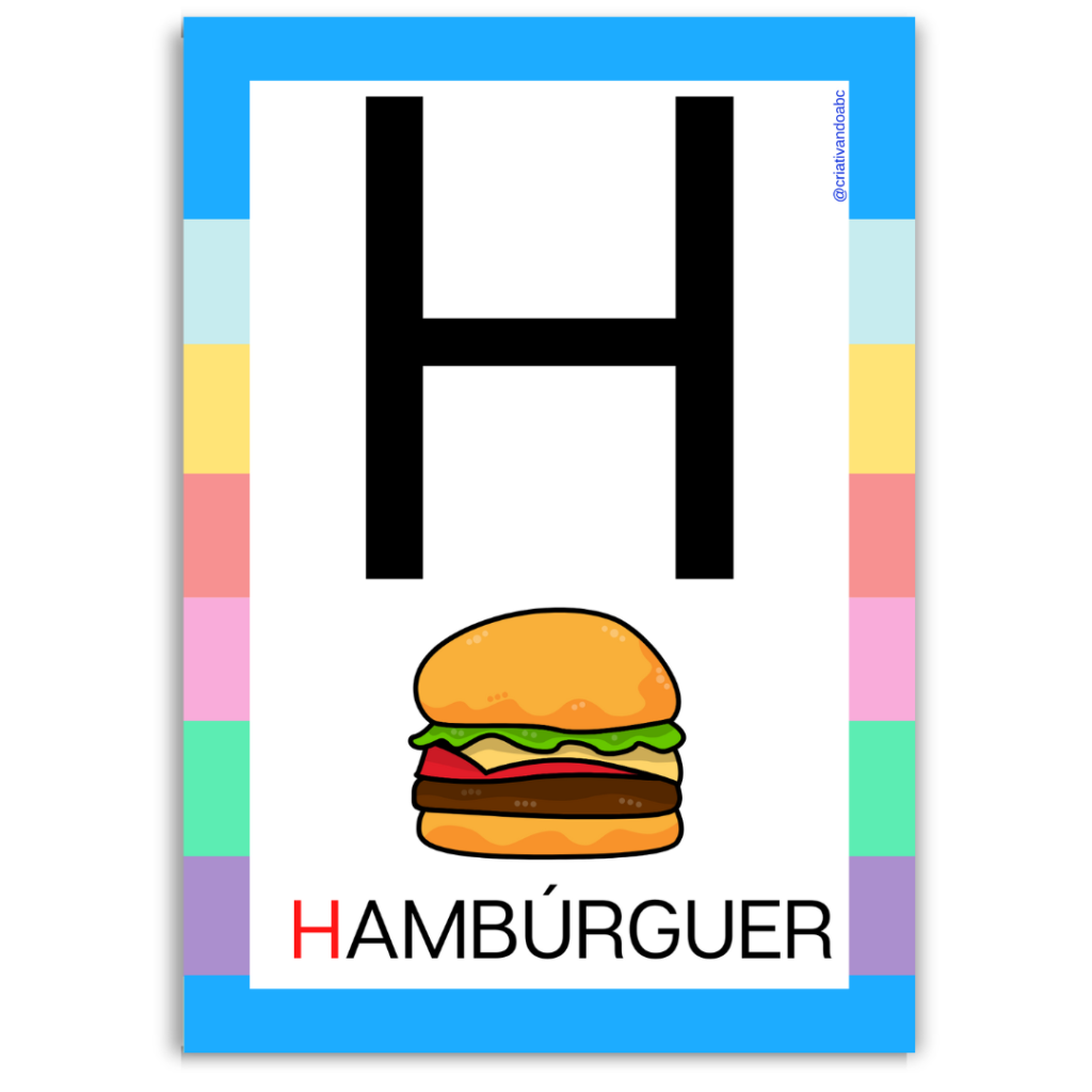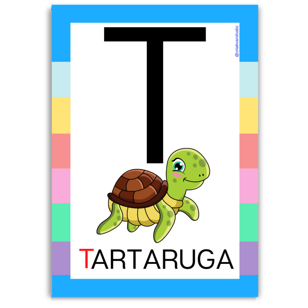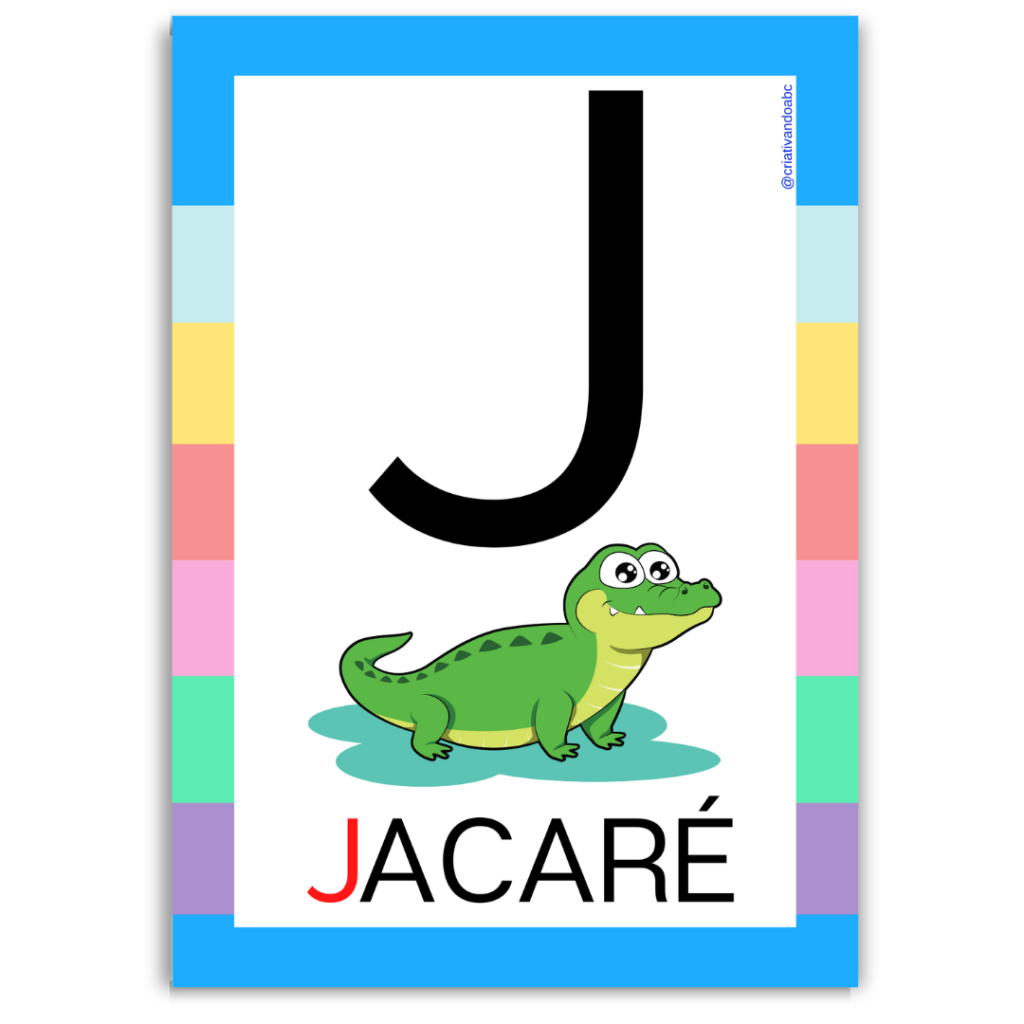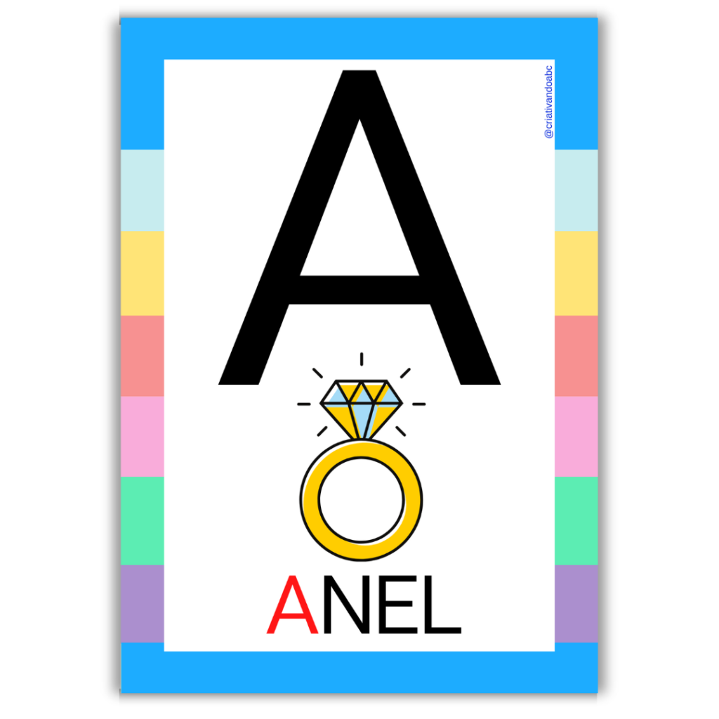 Alfabeto ilustrado em letra bastão maiúscula;