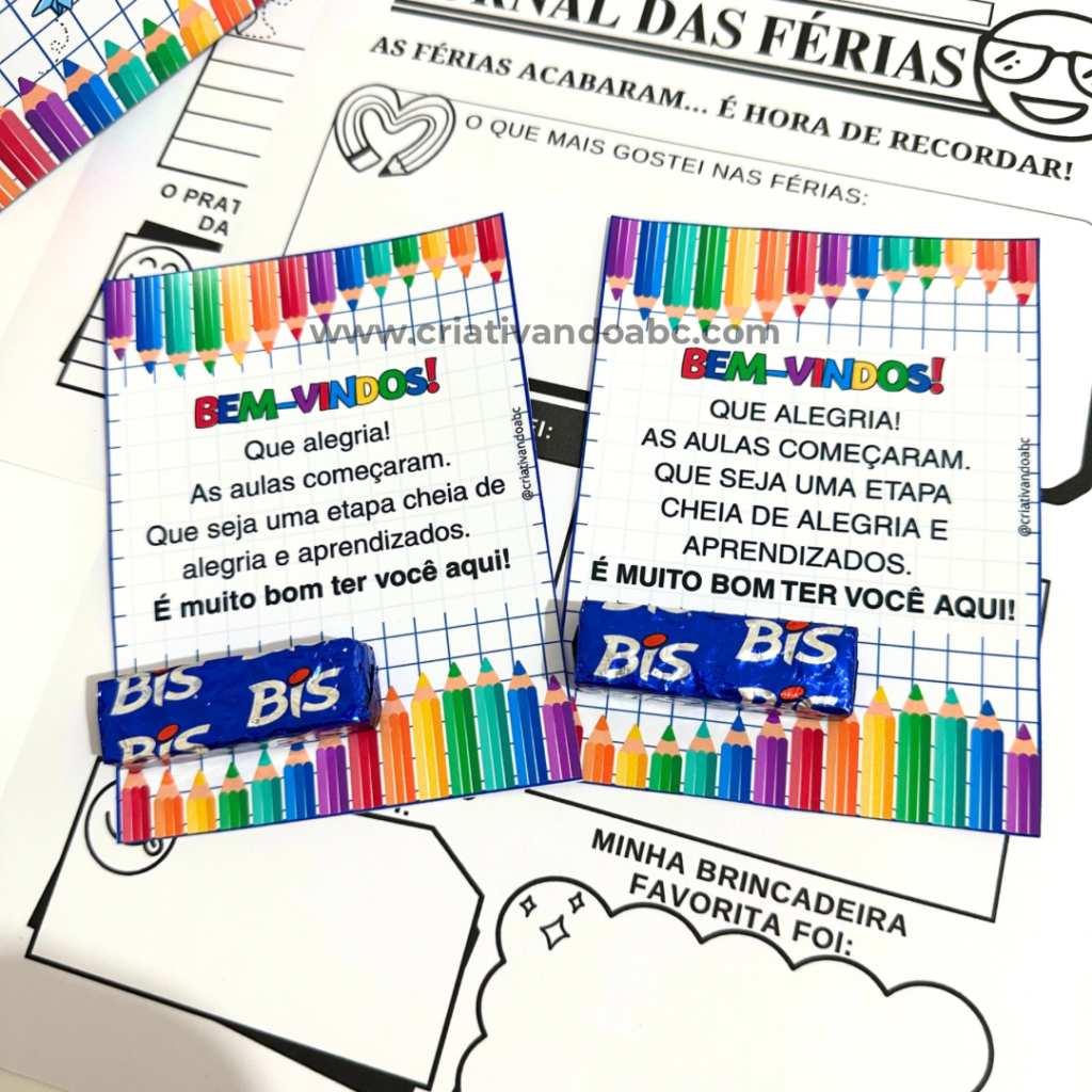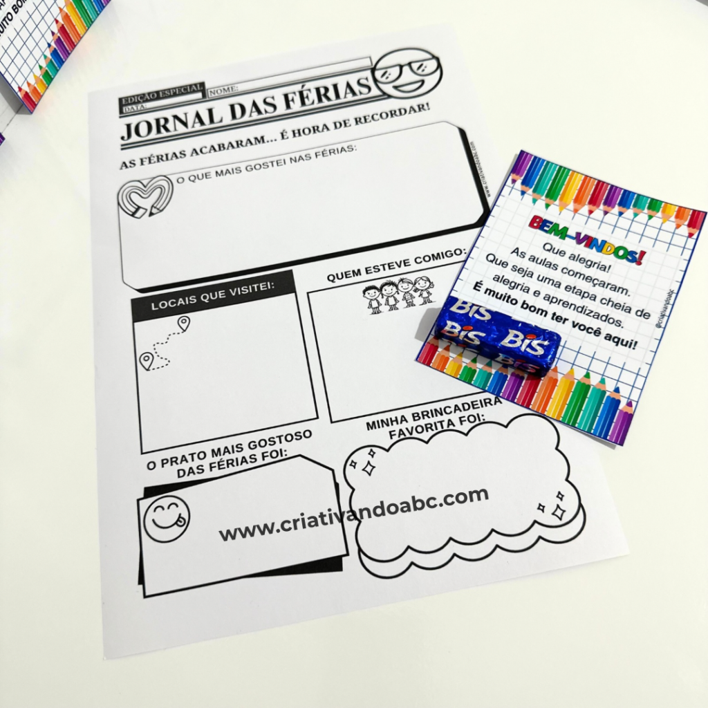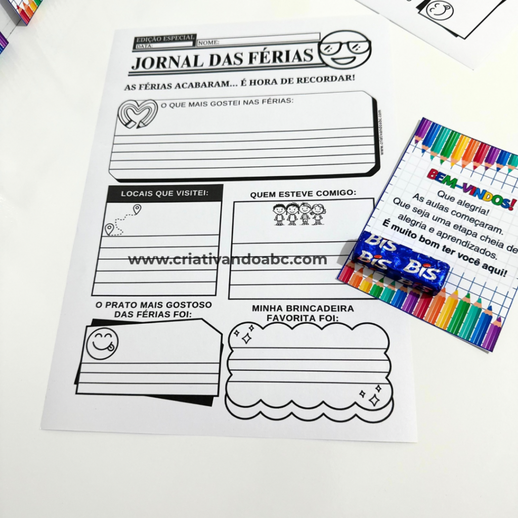 - Jornal das Férias (2 modelos), 1 para escrever e eoutro para desenhar.
