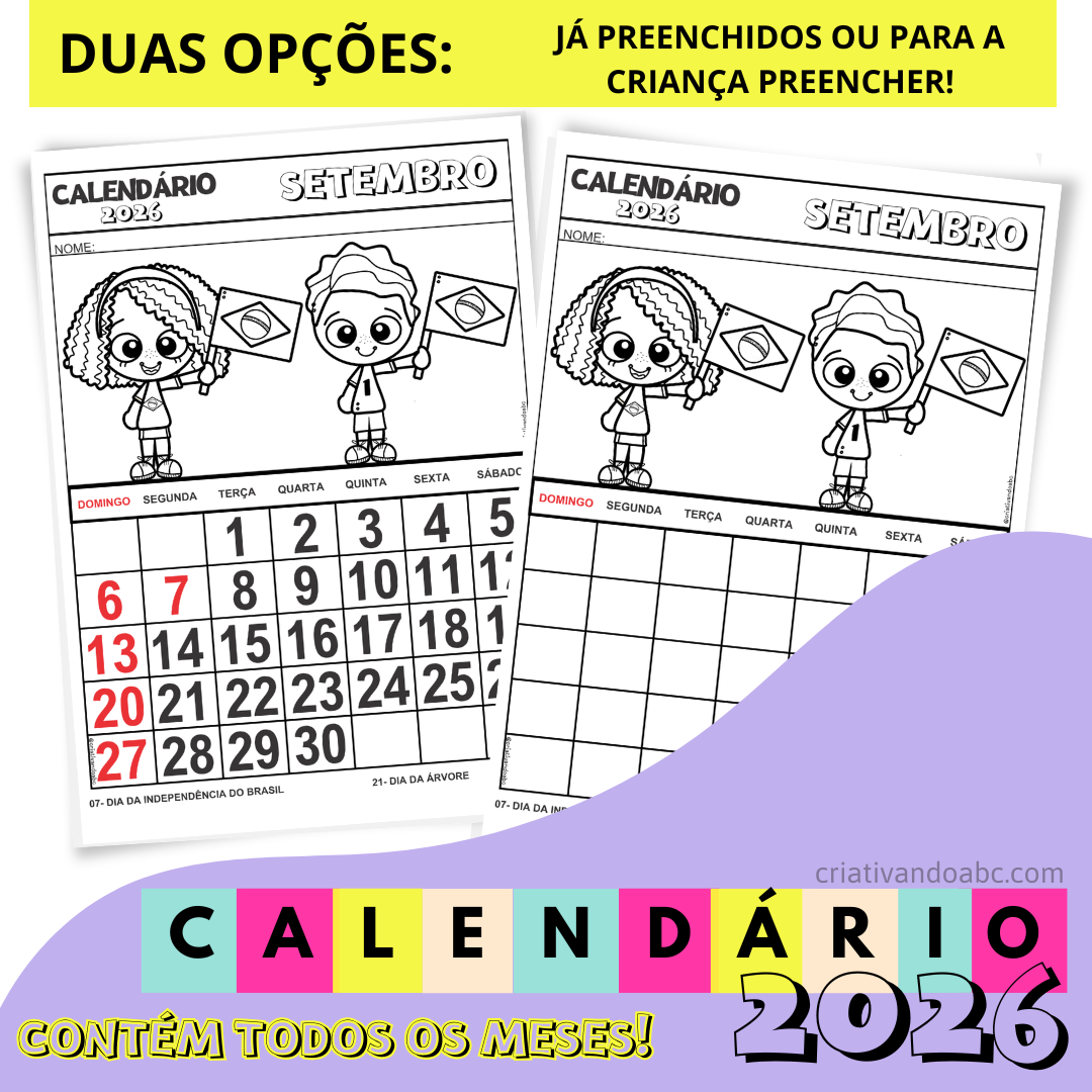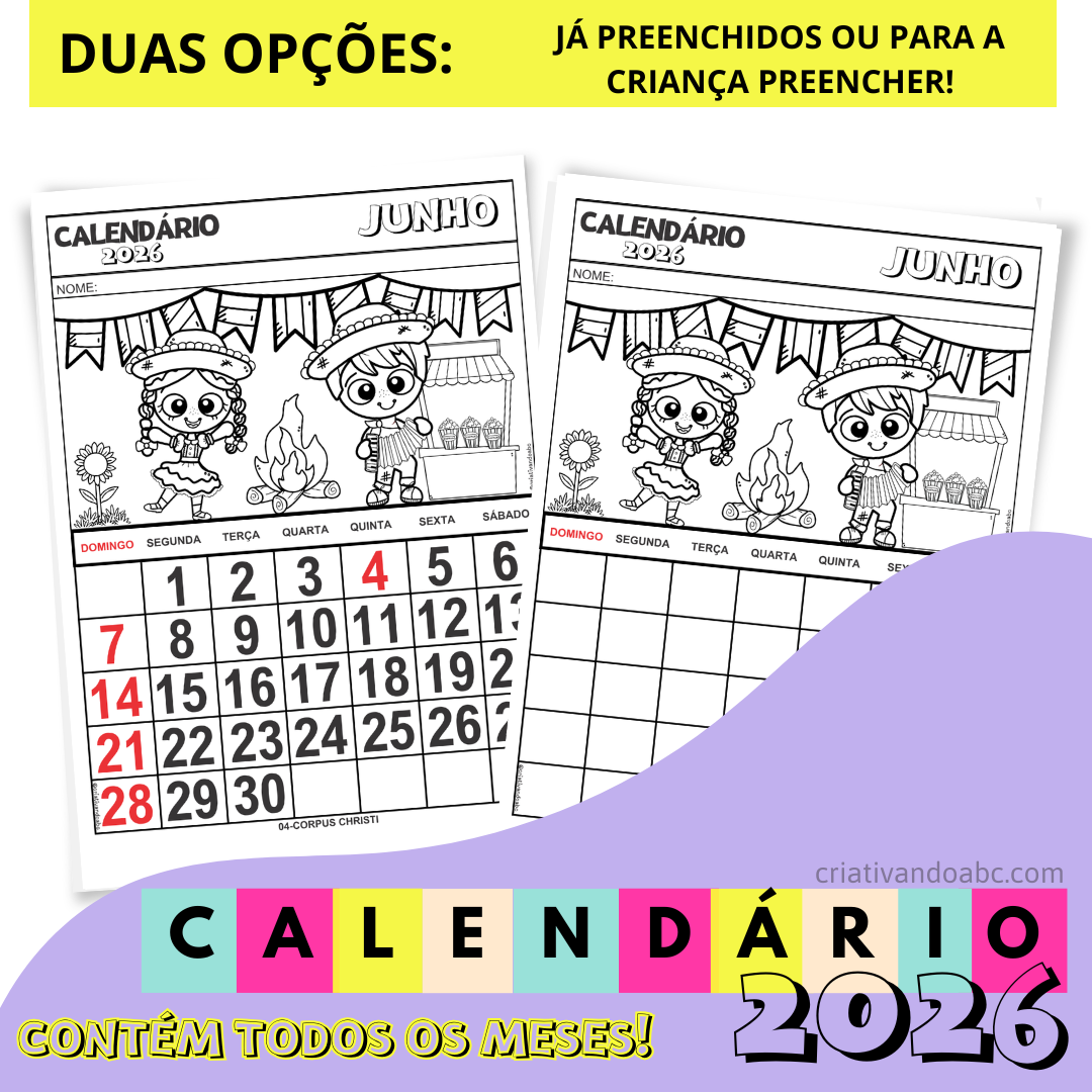 Calendário 2026 Para o Caderno contém: