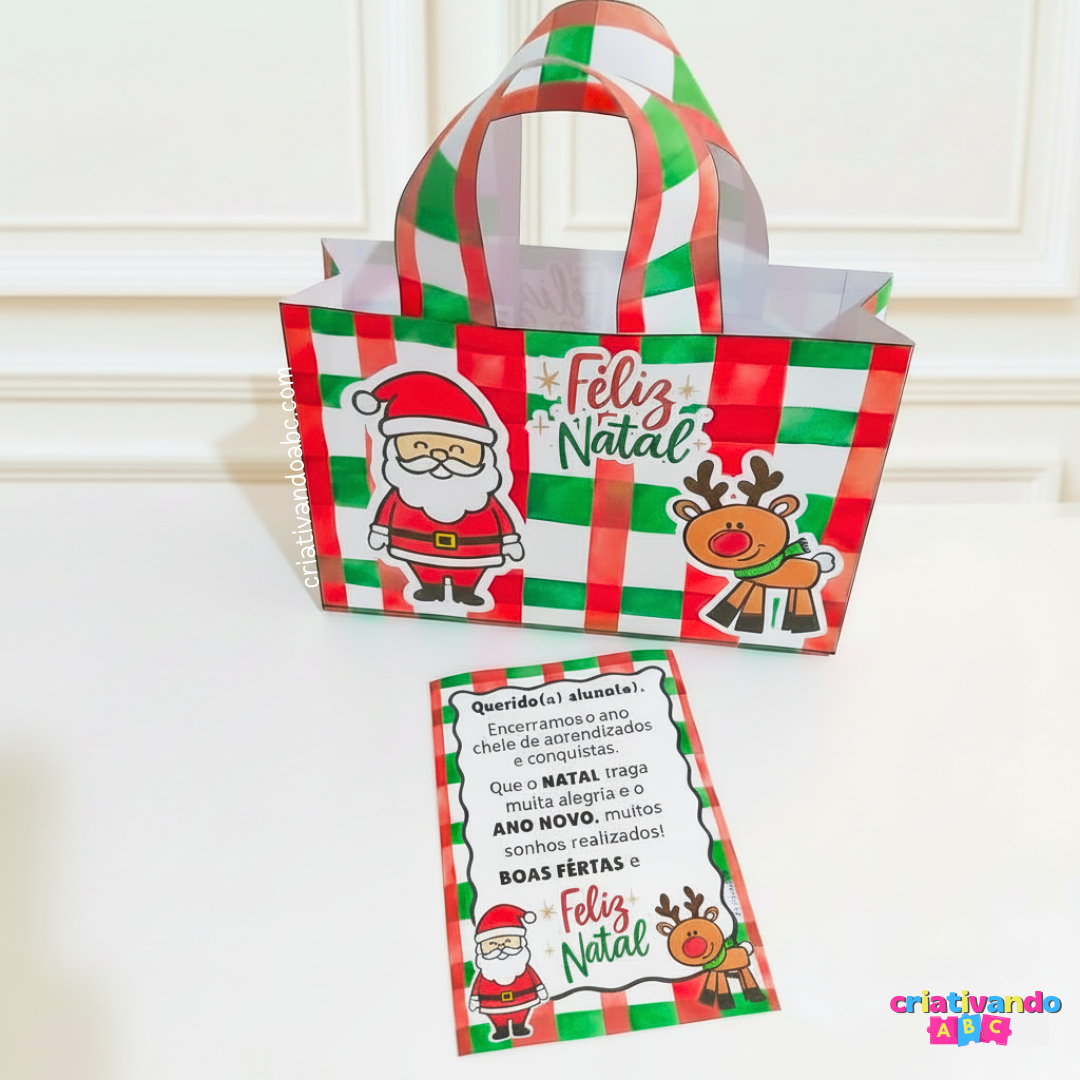 O Arquivo Cartão de Natal para alunos e Sacolinha Contém: