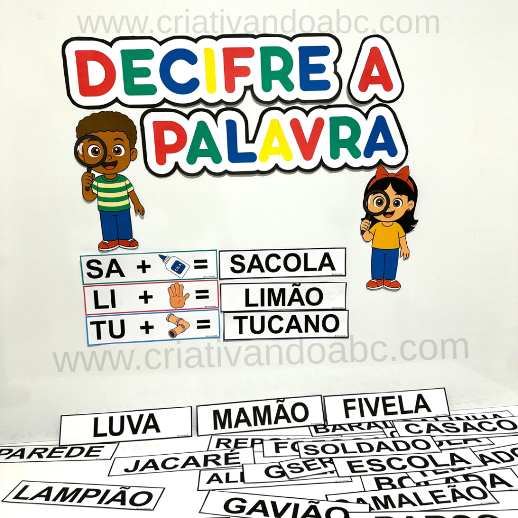 30 fichas de palavras para decifrar, estimulando a atenção e o raciocínio;