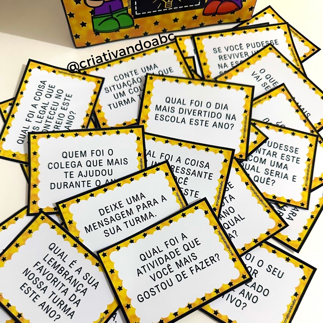 • 27 fichas com perguntas sobre os momentos vividos durante o ano na escola.