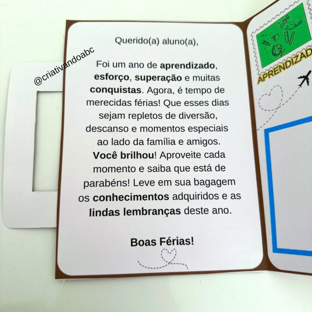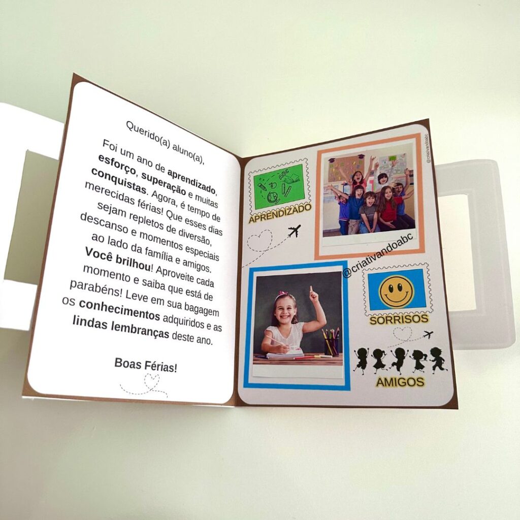 Cartões em forma de mala para Educação Infantil, 1º, 2º, 3º, 4º, 5º e 6º ano, ou seja, com mensagens: