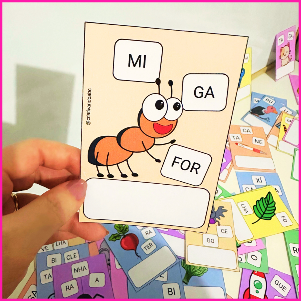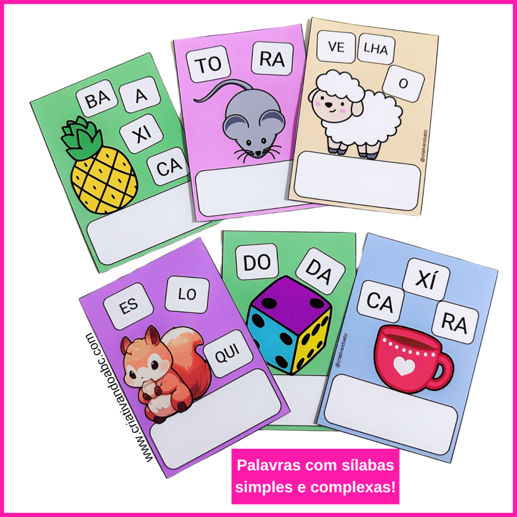 72 Fichas com palavras contendo sílabas simples e complexas.